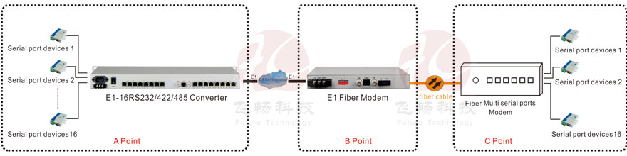 This interface converter is based on FPGA, providing 16Channel RS232/485/422 transmission on E1 interface. The product breaks through contradictions between traditional serial interface communication distance and communication rate, besides, it also can solve electromagnetic interference, ground ring interference and lightning damage. The device greatly improves reliability, security and confidentiality of data communication. It is widely used for various industrial control, process control and traffic control occasions, especially for Bank, and Power and other sectors and systems which have special requirements of electromagnetic interference environment. RS232/RS485/RS422 channel can transmit adaptable serial data asynchronously 0Kbps-19200Kbps baud rate.
