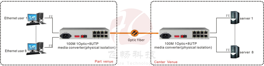 FC-SW8 is Ethernet IEEE802.3 media transceiver to achieve media conversion or extending network transmission distance between two kinds of media which are 8*10/100base-T UTP and 1*1000base-S/LX. It mainly used for fiber network far distance (20/40/60/80/100km) transmission supports 10/100/1000M or 10M100M1000M transmission rate. Fiber port and UTP can work through 100M or 1000M rate.