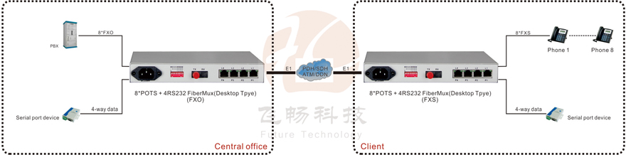 E1-8*POTS + 4RS232 FiberMux(Desktop Tpye)