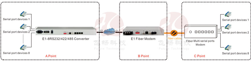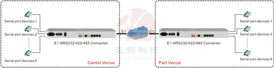 This interface converter is based on FPGA, providing 8Channel RS232/485/422 transmission on E1 interface. The product breaks through contradictions between traditional serial interface communication distance and communication rate, besides, it also can solve electromagnetic interference, ground ring interference and lightning damage. The device greatly improves reliability, security and confidentiality of data communication. It is widely used for various industrial control, process control and traffic control occasions, especially for Bank, and Power and other sectors and systems which have special requirements of electromagnetic interference environment. RS232/RS485/RS422 channel can transmit adaptable serial data asynchronously 0Kbps-57600Kbps baud rate.