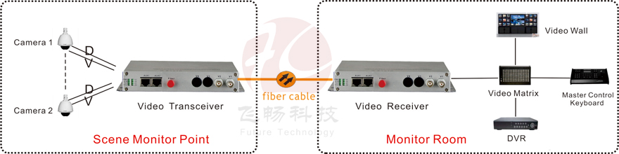 This digital video optical transceiver adopts digital video encoding and gigabit optical fiber transmission technology. The multi-channel single-direction bi-direction audio, video, data, telephone, Ethernet and switch real-time synchronization, no-distortion and high quality transmission is on the single-core or dual-core optical fiber. Complete digital video non-compression transmission technology, with video and data condition indicator, can monitor the system normal operation. It uses modular design, the user can flexibly select or customize configuration based on the scene occasion. Rack installation or desktop installation can be optional. This product is made up of optical transmitter and receiver. It can transmit 2Channel forward direction Video and 1Channel reverse direction RS485 data.