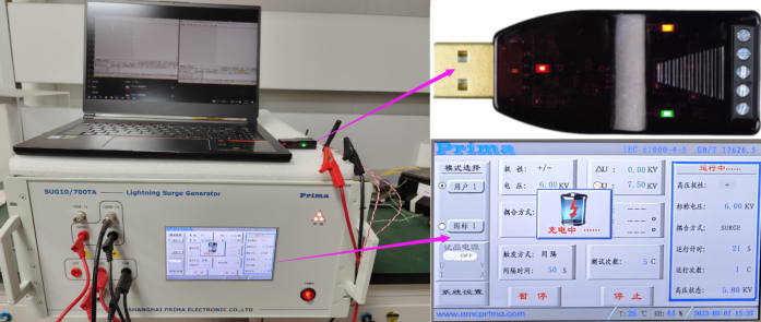 RS485接口可過:短路電流波10/700μs,開路峰值輸出電壓6KV,內(nèi)阻40Ω的雷擊測(cè)試
