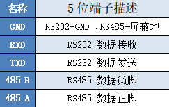 物理接口:5芯3.81mm間距螺釘式端子