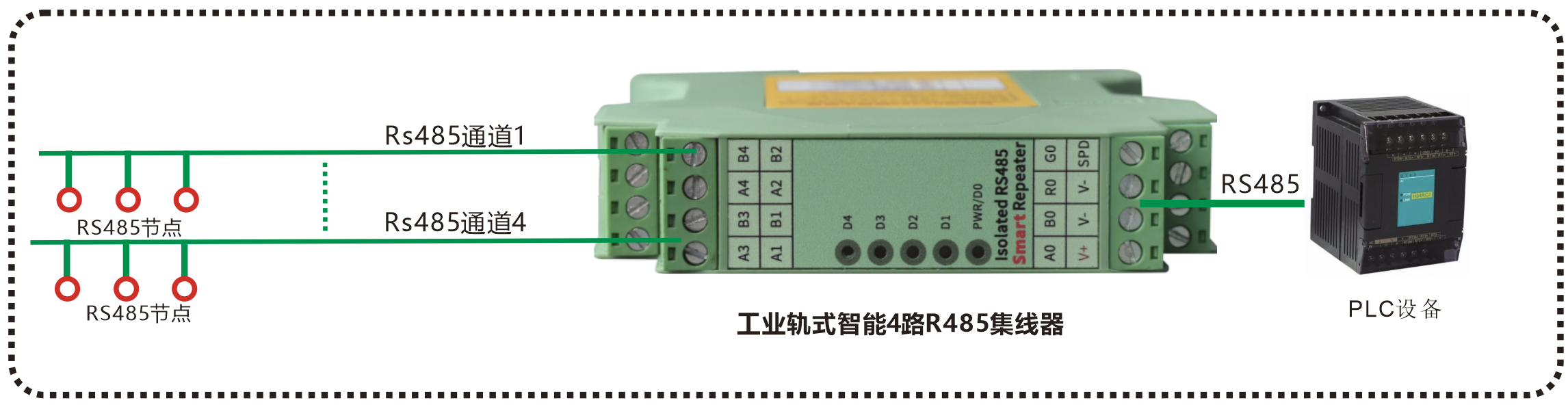 模塊化導(dǎo)軌式 智能1路轉(zhuǎn)4路RS485隔離集線器
