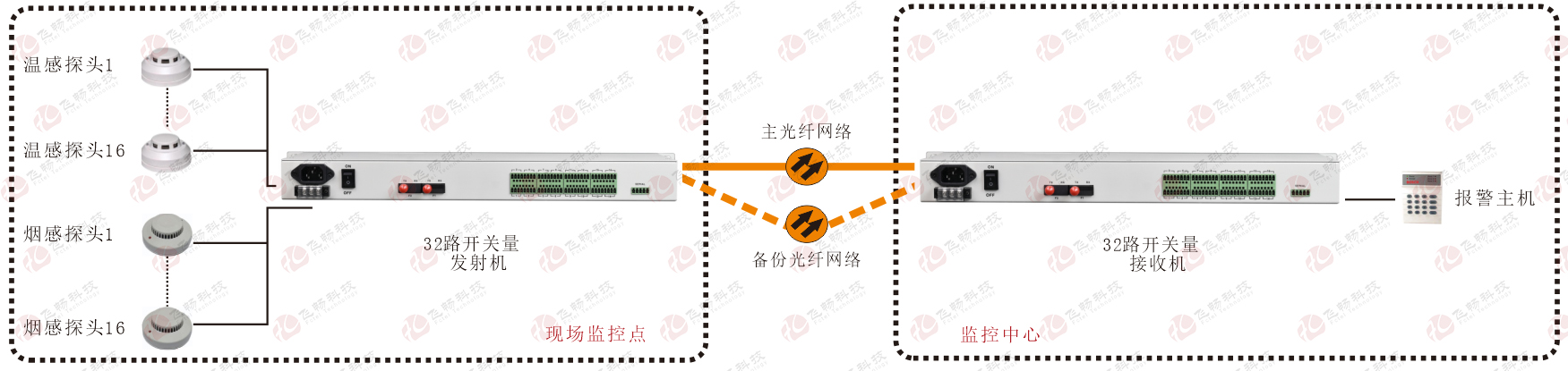 • 飛暢科技-1-32路 開關(guān)量19英寸 1+1光纖 備份 光端機